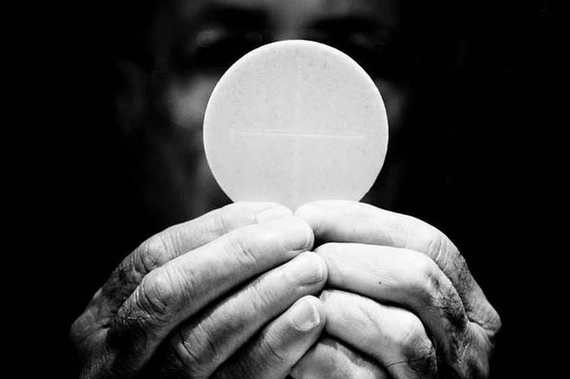 Na noite em que ia ser entregue, Jesus tomou pão e, depois de o benzer, partiu-o, deu-lho e disse: "Tomai, isto é o meu corpo." Em seguida, tendo tomado o cálice, dando graças, deu-lho, e todos beberam dele. E disse-lhes: "Isto é o meu sangue, o sangue da Aliança, que será derramado por muitos. (Mc 14,22-24).