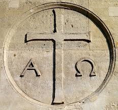 Estas são as primeira e última letra do alfabeto grego. No livro do Apocalipse, que é o último livro do Novo Testamento, Cristo é referido como o "Alfa e Ômega. Isto significa que Ele é a origem e o fim de toda a criação. Nós só existimos porque fomos criados por Deus, e o propósito final de nossa vida está a passar a eternidade com Deus no céu. O Alfa e o Omega símbolos são colocados no círio pascal na Páscoa. São João Paulo II muitas vezes nos lembrou que Jesus Cristo é o "centro e fim da história humana". Todo o tempo, e toda a criação estão sob seu comando.