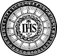 A IHS letras são frequentemente encontradas em igrejas católicas e nas lápides e vasos sagrados. Eles são um monograma do nome de Jesus, formado por abreviar a palavra grega para Jesus. Do grego "IHSUS", aparece nos evangelhos dos apóstolos Marcos e Lucas. Sua forma latina, "Iesus Hominibus Salvatoren (IHS)", foi criada por São Bernardino de Sena, no século XV, e adotada por Santo Inácio de Loyola, no século XVI, como emblema da Companhia de Jesus. O símbolo foi usado como carimbo nas publicações da Companhia. A sigla foi depois transformada em monograma e usada como um dos símbolos Católicos.