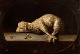 A O cordeiro é o símbolo de Cristo. A brancura do cordeiro simboliza a pureza, e os cordeiros são frequentemente associados com inocência e no sacrifício do Antigo Testamento, com. Cristo era, portanto, o cordeiro de sacrifício pelos pecados da humanidade. Às vezes, o cordeiro carrega uma bandeira que simboliza a vitória de Cristo sobre a morte de Sua Ressurreição. Isso é conhecido como o "Cordeiro de vitórias" símbolo. Outra forma do símbolo mostra um cordeiro em um livro que está fechado com sete selos. Isto simboliza Cristo como juiz do fim do mundo. No livro de Isaías (53,7) são encontradas as seguintes palavras: 'duramente tratado, ele suportou com humildade, nunca abriu a boca, como cordeiro levado ao matadouro ". Estas palavras são encontrados em várias leituras para a Sexta-Feira Santa. A palavra latina para Cordeiro é "Agnus".
